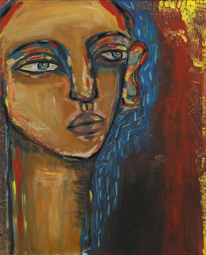 The line between looking inward and observing the world outside can be quite fine. In this piece, the subject’s gaze drifts just beyond the frame—thoughtful, alert, and almost searching—suggesting a mind that is both present and elsewhere. Through Fatma's signature visible strokes and layered colors, Fatma explores how we process the world not just through what we see, but through how we feel it. It’s a portrait of stillness, awareness, and the grey area between self and surroundings.